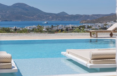 Blu Suites and studios are conveniently situated on a hill side, overlooking Milos bay, 5 minute drive from it. Six completely new accommodations, with queen beds, showers and adjoining W.C.s, built in the traditional island style. Air-conditioned, equipped with kitchenettes, hair dryers and espresso coffee makers .They are ideal for couples. Individual verandas, wonderful view, big 130 sq. meters pool, peace and quiet, away from public roads, easy access by car to the island's lovely beaches.