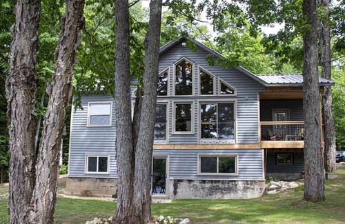 Outside you'll find a large lawn for ball games and a firepit right by the water. While there is no beach, there is a shallow entry to the water with hard sand underfoot, and the water deepens gradually. The on-the-water deck/dock is great for chilling out on a sunny afternoon, taking in the view and watching the kids play in the water.