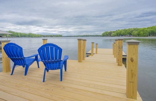 Come relax, sun, and eat on the extra large deck while enjoying the stunning blue views of High Rock Lake. This new construction home was built with fun and comfort in mind just for you! The two bedrooms are spacious and private with each having its own bath. The living area includes living with electric fireplace and large WiFi TV, desk/work area, comfy seating, efficient, fully appointed kitchen, dining island and lots of room. You can park your boat at the private dock, or swim, fish, sunbathe, or just relax by the swings at the firepit. Whatever your vacation style, you will find amenities to promote your satisfaction.