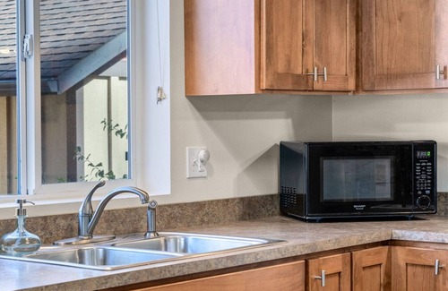 This charming bungalow is located above the Old Mill District. It takes just a few minutes to walk to the river, Hayden Homes Amphitheater and the Box Factory. This is a 2 bedroom single level home with 1 1/2 bathrooms. This home has a king bed in the primary bedroom and a queen bed in the second room. There is a private office with a sit/stand desk and a twin sleeper loveseat. Open living space features a Stressless couch, recliners and a smart TV. You can stream your favorite movies in the evenings after a day of exploring. Kitchen is fully equipped with all that you need to make a great meal and gather around the dining room table with family and friends.
