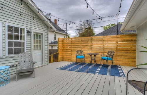 This home is a 3 BED (2 QUEEN/ 1 KING) 2 BATH. It has the charm of the original woodwork and layout and the convenience of modern amenities. You will love spending time on our patio during your stay. There are plenty of seating options as well as a table and umbrella if you wish to eat outside. There are ceiling fans in all bedrooms as well as noise machines and air filters. We also have a QUEEN SIZED AIR MATTRESS with additional linens for groups of UP TO 8 people INCLUDING CHILDREN.