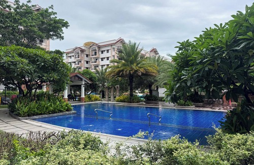 Yes, this Ususan apartment has a swimming pool. Check the Facility Overview section for details about the pool and other available facilities.