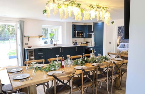 Bramley features a spacious open-plan living area, an expansive patio, and beautiful gardens, along with the delightful addition of a hot tub for up to seven people.