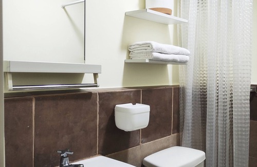 - Luxurious bathroom with a digital touchscreen shower heater and bidet.