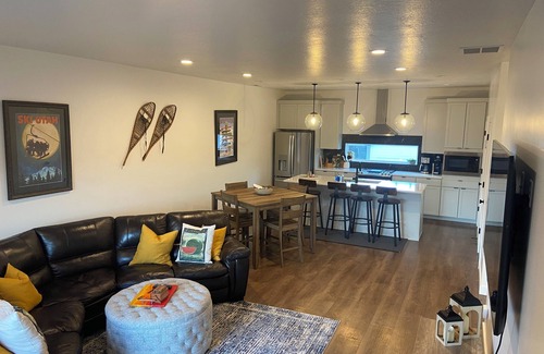 Welcome to our luxury mountain home!! Our home offers 3 bedrooms with 2 king beds, 2 full beds (bunk bed), and 1 twin trundle bed. Our townhouse comfortably sleeps 8. All 3 en-suite bathrooms and 1 half bath are equipped with a bathtub, shower and bathroom essentials. Our brand new modern townhouse is located in Mountain Green, Utah which is situated close to many all seasons activities. We are located 12 minutes to Snowbasin Resort, 30 minutes to Nordic Valley and 40 minutes to Powder Mountain. Approx 1 hr to Park Ciry and Deep Valley. Summer and fall bring classic Utah activities to life with hiking, fly fishing, river floating and beach fun at nearby Pineview Reservoir - 20 mins. Make yourself at home in our completely stocked /furnished town home while having access to all amenities within our community. Guests will enjoy our peaceful residential community with amenities including pickle ball courts, hot tubs, pool, fire pits, BBQ gas grills and children’s playground area. A new full service supermarket is within walking distance from our townhome. Our townhome is perfect for families. We look forward to hosting you soon!