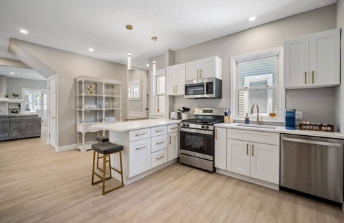 Welcome to our luxurious Jersey Shore retreat! This just renovated home boasts ample space for relaxation and entertainment. The spacious living room on the first floor offers plush seating for everyone. Adjacent to the living area, you'll find a generously sized dining room with seating for 10 guests, perfect for enjoying meals together.