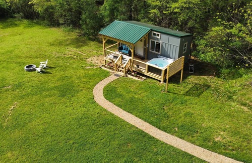 Enjoy the lovely setting of this romantic spot in nature. Appreciate our fully equipped brand new tiny home, tucked amongst the trees and Blue Ridge Mountains. Our tiny home, " Jupiter Joy" is located in a tiny valley 15 minutes outside of Asheville. It is perfect for couples looking to escape the city, or adventure seekers. Soak in the hot tub under the stars or relax on the deck with your coffee or tea while gazing at the garden across the field. Take in the rolling pastures and wildlife.