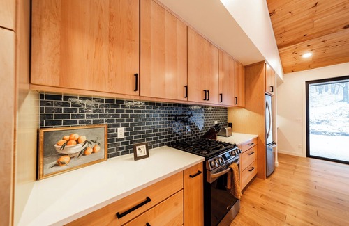 At Mountain Laurel, we've also taken care to upgrade all the aspects of your stay, including premium linens and bath products, luxury furniture and mattresses, a cook-ready kitchen stocked with oils and spices, and even firewood for the winter. See below for a list of all the wonderful amenities we have to offer.