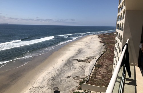 Brand new condo in the luxurious Las Olas Mar y Sol resort (not Las Olas Grand) in northern Rosarito, BC. Large condo with two bedrooms and two full bathrooms, fire pit on the large balcony overlooking the Pacific Ocean. Our resort is right on the beach where you can swim and surf steps away from the building. The resort has three pools, eight jacuzzi’s, a gym, a sauna and steam room.
