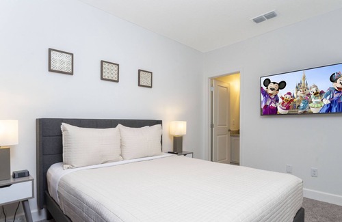 Brand new and modern home, beautifully decorated located in gated community next to nature preserve in a safe and quiet neighborhood minutes away from Disney Parks. This spacious and stylish 4 bedroom/ 3.5 bath home features themed Mickey Mouse and Star Wars bedrooms, large smart TVs in each bedroom, free Wi-Fi, cozy suite downstairs with a queen size bed, spacious master suite upstairs and a very inviting backyard with a barbecue grill perfect for family and friends gatherings.