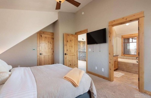 This 2-level 1,563 sq.ft cabin features dual master suites with a loft area that has a custom Murphy bed for a 3rd sleeping area and comfortably sleeps 6 adults.