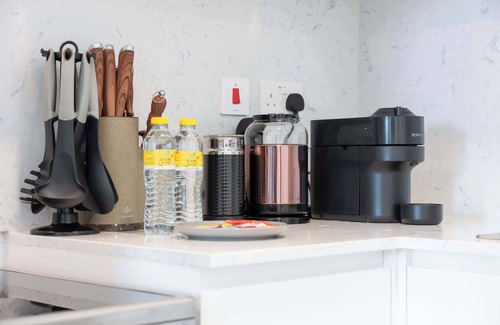 You’ll find hotel-grade bed linen and towels, along with initial toiletries like shampoo and soap, ensuring a comfortable arrival experience. Additionally, complimentary tea and coffee will be provided to get you started, you will find many grocery store options within 5-10-minute walk.