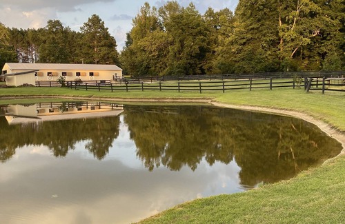 Amenities include linens, dishes, coffee, tea and treats for the horses. Enjoy a walk around the pond, meet the horses and warm up next to an evening fire.
