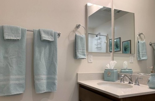 We have a sparkling clean, beautifully decorated private bedroom and bath to host you in our new condo in Goleta. Our luxurious queen bed ensures a restful night's sleep, and complimentary coffee, tea and snacks will get you started on your journey the next day!