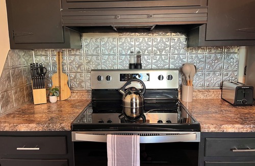 Included in the home on the main level is a full size washer and dryer, a large bathroom with walk-in shower, TVs in every room, and a stocked kitchen for all the home chefs out there. Make your way to the basement for Villa Veda’s Bar and Lounge featuring a mini bar (provide your own), pool table, large TV, and lounge area. Then head outside to the fenced in backyard featuring a fire pit, seating area, and cornhole boards. Home also includes WiFi, guest streaming accounts, cards, books and board games.