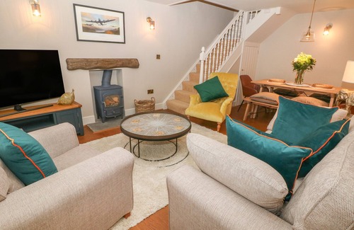 Amenities: Gas central heating and woodburning stove. Electric oven and induction hob, microwave, fridge, washing machine, dishwasher, nespresso machine, taking original capsules. Smart TV, and WiFi. Fuel and power inc. in rent. Bed linen and towels inc. in rent. Roberts internet radios. Luxury Bamford organic amenities. Off-road parking for one car and additional roadside parking. Enclosed front patio with seating. Two well-behaved pets welcome. Sorry, no smoking. Shop and pub 0.1 miles. Train station 1 mile away (Hope train station). Note: There is a low hanging beam in the master bedroom, please take care. Please note: no children under the age of 12.