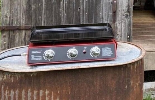 Stocked kitchen, firewood, charcoal grill, 2 burner coleman stove and 24” griddle for cooking, all supplies included