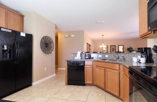 This beautiful 5-bedroom villa is located only 4.7 miles from Disney (12 min drive). It can sleep up to 10 guests. It has 5 bedrooms, including 2 master bedrooms and 4 spacious bathrooms, all on one huge level. The property is modern and beautifully decorated throughout with a sophisticated feel to it. The family room has a 55” SMART (3D) flat screen TV and a huge L-shaped sofa so there is plenty of room for everybody to get comfy! The lounge area leads out directly to the pool deck so you only have to step outside if you want to have a dip in the pool and then recline on one of the sun loungers! If you’re in the mood for some lunch in the sunshine, you’ll be happy to find an outdoor dining set here too! The enlarged pool area is surrounded by attractive views and the pool can be heated on request. The spacious kitchen has all the appliances and utensils you will need to dine at home. There is a breakfast seating area for 4, a formal dining area for 6 and a breakfast bar with stools, it feels like something from the movies! All the bedrooms have flat screen TVs. The first master bedroom has a king size bed, a large en suite bathroom, walk-in closet, a 40" flat screen Samsung SMART-TV and views across the pool area, it is nothing short of perfection! The second master bedroom also features a king size bed with an suite bathroom and a 40" flat screen Samsung SMART-TV. Here two couples can have the stay of a king and queen! You will further find a queen-sized room and two twin rooms, each of which also have flat screen TVs and are tastefully decorated. It also includes a washer and a dryer plus ironing equipment (Linen and towels are provided), Wi-Fi and air-conditioning. *** Pool heaters are set to 86 prior to your arrival. The reached temperature will depend on the weather. Pool heaters run 12 hours during the day. No refund or compensation will be given if the pool heater does not work unless the guests paid for the heating of the pool and it is proven that there was a technical issue that created an inconvenience. The refund or compensation will never exceed the amount paid by the guest for the heating of the pool.