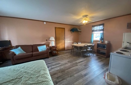 Cabin 8 (duplex cabin with connecting door) - single room units, two full-size beds and hide-a-bed, bath with tub and shower, full kitchen.