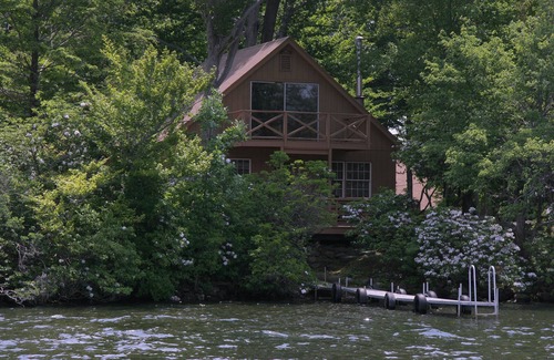 There are 5 guesthouses on the Island, A-frame, Bay House, Chalet, Deck House and Captain Cabin-which sit on the lakeshore of the Island, all within an easy stroll yet distinctly private from one another. Each cabin has a living room, a kitchen area and 2, 3 or 4 bedrooms. Each cabin has a refrigerator, a stove, a kitchen sink and plates and utensils. Also each cabin has its own dock and at least one water front deck to enjoy the view. There are plenty of windows. Each guesthouse has water, electricity and other facilities.