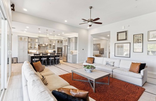 This property is beautifully designed and spacious, featuring a great layout that offers privacy for all guests while providing ample gathering areas. It is situated in a clean, quiet neighborhood. The home is maintained to high standards, reflecting quality and comfort, and is well-stocked for a convenient stay. Guests appreciate the inviting atmosphere and stylish decor, which enhance their comfort. Additionally, the property boasts stunning views and a fantastic pool area for relaxation.