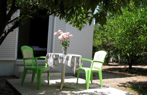 The simply furnished semi-detached house NIKOS is immersed in lush vegetation with banana plants and fruit trees. The small stand-up kitchen is adjoining to the 2 bedrooms and 2 bath rooms. There is direct access from the kitchen and one bedroom to the roofed terrace. A barbecue is available on demand.