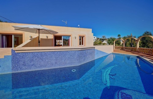 Residence "Canuta Baja". 8 apartments in the residence. In the district of Canuta Baja 3 km from the centre of Calpe, 200 m from the sea, 200 m from the beach. For shared use: property 2'000 m2 (fenced), terraced garden with plants, swimming pool (8 x 3 m, seasonal availability: 01.Jan. - 31.Dec.). Outdoor shower, garden furniture, parking on the premises. Shop 2 km, restaurant 50 m, bus stop 1.4 km, sandy beach "Puerto Blanco" 200 m (small). Nearby attractions: Parque atracciones Terra Mítica 35 km, Parque acuático Aqualandia, y Benidorm Palace 25 km. Hiking paths: Peñon de Ifach 5 km. The owner does not accept any youth groups.