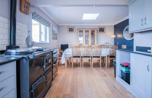 Step inside and feel at home in our stylishly decorated house, featuring wooden flooring downstairs and plush carpets upstairs. The ground floor invites you in with two welcoming double bedrooms (one with an en-suite bathroom), two additional bathrooms, and a large kitchen with a stunning sea vista. The kitchen is equipped with a delightful Aga (fully operational in autumn), perfect for crafting home-cooked meals as you soak in the breathtaking views. Gather around the large dining table that seats up to ten, creating memories over delicious meals.