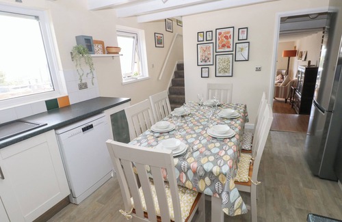 Amenities: Oil central heating. Electric oven, gas hob, microwave, fridge/freezer, washing machine, dishwasher, tumble dryer, kettle, toaster. Samsung plus TV with Netflix, BBC Iplayer, ITVX. WiFi. Fuel and power, bed linen, towels inc. in rent. Off-road parking for 2 cars. Electric Vehicles: This property does not have a charge point for electric vehicles and charging from within the property is prohibited. Enclosed rear garden with lawn, patio, barbecue and furniture. Front patio with furniture. Two well-behaved pets welcome. Sorry, no smoking. Shop 0.3 miles, pub 0.6 miles. Note: Steps up to the kitchen, take care. Note: Enclosed garden accessed via steps a few metres to the rear of the house.
