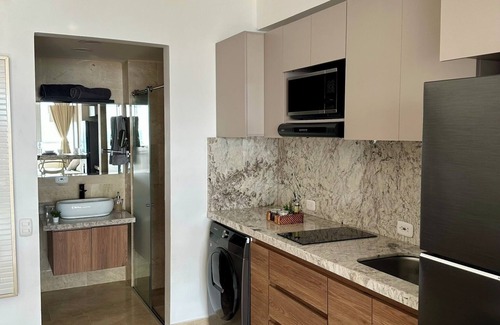 This beautiful loft, located in the Crespo neighborhood, offers a unique experience: ocean views from the balcony, tropical breeze, and the convenience of being just 5 minutes from Rafael Núñez International Airport.