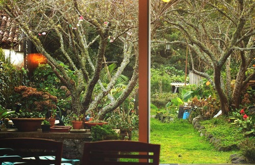 "Casa das 2 Marias" is a traditional Azorean house located in the center of Furnas, which has been totally recovered with respect to its most characteristic elements, such as walls of volcanic stone, the mansard, the wood oven and its chimney. Built on a concept of open space and vintage decoration, it offers the best leisure and relaxing moments in contact with nature. Entering the house the lobby gives you access to: a large living room (with cable TV and free Wi-Fi) that communicates with a spacious and fully equipped kitchen (stove, oven, microwave, electric kettle, toaster, blender, coffee, fridge , washing machine) and with wood oven, both overlooking the patio and garden; a complete bathroom with shower; and, the mezzanine access stairs, where you will find the main bedroom. You can stay in one of the four beds: one double (140x200 cm) and one twin bed (90x200 cm) on the mezzanine, and two twin beds (90x200 cm) that can be available in the living room. Outside you can enjoy the patio with comfortable furniture, sun loungers and a small grill, the shower with spring water, and the garden, with fruit trees and small vegetable garden, where you can enjoy the enchanted valley of Furnas and the riverside that passes at the end from the garden If you're lucky you'll enjoy the company of local friendly cats, whom we call "the guardians"!