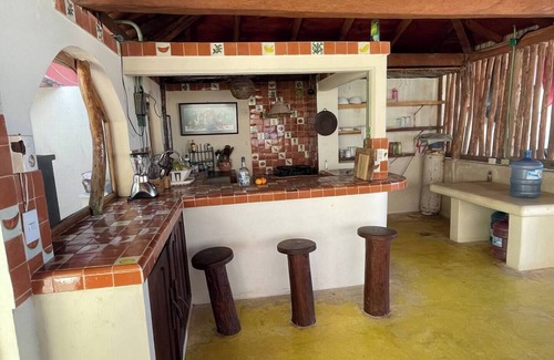 A Mexican Style bungalow with two rooms, one with King Size Bed and the other with a single bed. This bungalow offers rustic charm and modern comforts. Authentic decor, handcrafted furniture, and traditional textiles create a cozy ambience. Amenities include WiFi, air conditioning, ceiling fan and hot water, ensuring a comfortable stay amidst the beautiful pacific ocean. El Cangrejo has a designated shared kitchen with La Nopalera one of our 4 bungalows. All of it Beach front on Playa Blanca!