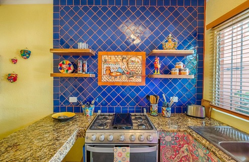 Welcome to the freshly remodeled Casa De Las Joyas! All new flooring, new paint inside and out, remodeled kitchen and bathroom, and now with an outdoor shower in the back yard to get the sand off before coming inside! Casa De Las Joyas is still, a colorful little slice of heaven and a wonderful, comfortable place to stay. Now even prettier and more functional! The casa is located in a neighborhood of small homes originally built for locals within walking distance of Xcacel Beach. Xcacel Beach is home to turtle nesting grounds, and therefore protected by the Mexican government. Several publications have listed this beach as one of the top ones in Mexico, if not the world.
