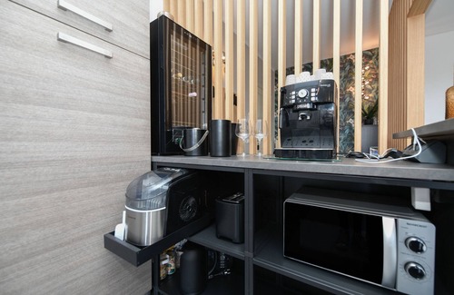 The apartment has two bathrooms: one complete with a shower and washing machine, and the other dedicated to maximum relaxation, with a comfortable bathtub. The three double bedrooms offer a welcoming atmosphere and the right temperature even in summer thanks to modern ceiling fans, with two of them overlooking the balcony with a lake view.