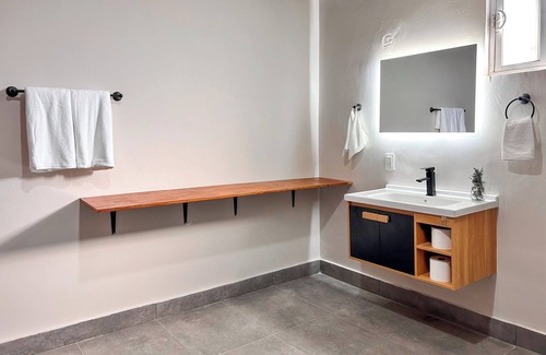 Nestled in Valle de Guadalupe, this 5-bedroom, 5-bathroom vacation home brings it all within your reach. Fans of nature and the outdoors will love being 5 minutes by car from Ejidal El Porvenir Park and 31 minutes from Dona Petra Canyon Trailhead. Make short work of the 3-minute drive to Las Nubes Wineries and Vineyards or the 7-minute drive to Adobe Guadalupe Vineyard.
