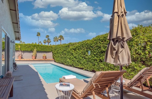 Casa Mesquite is a lovely, recently-renovated bungalow in south Palm Springs with a saltwater pool and spa. The previous 3 bedroom was renovated into a 2 large bedroom home, featuring the updated kitchen and baths in a beautiful, peaceful setting. The completely walled/hedged backyard creates great privacy. Perfect desert getaway for couples or small groups. Across the street is Demuth Park, with great trails and biking...just 2 miles to Downtown Palm Springs, for fun shopping and dining.