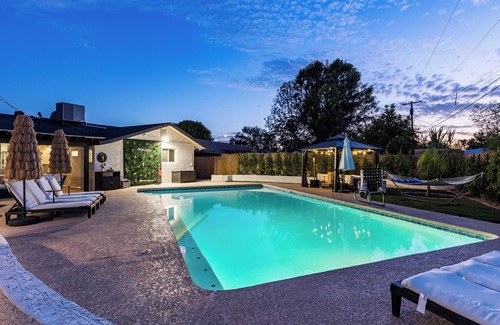 Welcome to Casa Tropical — your private, resort-style escape with a huge pool, fire pit, and space for up to 16 guests across 11 beds. Perfect for family getaways, group trips, or reunions. Enjoy a full kitchen, espresso bar , board games, outdoor dining, and fast Wi-Fi. Just 10 mins to Tempe Marketplace & ASU, and 20 mins to Scottsdale or Downtown Phoenix. Clean, fun, and ready to host your next unforgettable stay.
