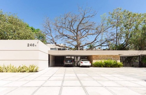Beautiful house, with a privileged location a few steps from the Monument to the Fatherland and Paseo Montejo, on an avenue, in a safe and wooded area, a few minutes from the Historic Center, surrounded by hotels, restaurants, services, and a sports stadium. Built-in the 70s on a large rock and awarded for its architecture, it has 10 apartments with spaces designed by experts, surrounded by nature and art, making them the ideal place to make your stay in Merida memorable.