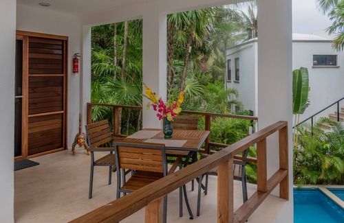 This private casita is a new studio apartment boasting a bright, airy open space just steps from the private beach and beside the new fresh water pool. The casita is self contained with a full kitchen, private bath, living area and lovely outdoor patio perfect for dining and entertaining. The apartment is modern with cement counters, stainless appliances, with traditional wood louvered windows (with screens) to let the beautiful sea breeze through.