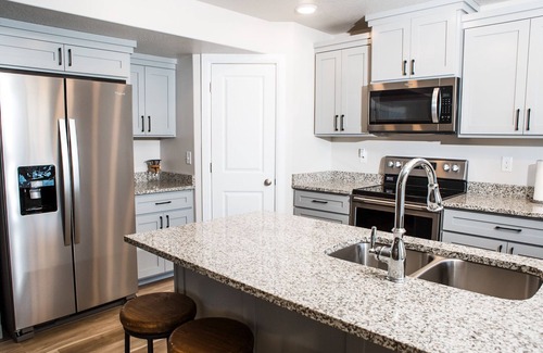 We've stocked the kitchen with basic cooking utensils, pots & pans, flatware, plates, bowls, and cups hoping to make your stay easy and convenient. An Instapot, griddle, toaster, Ninja blender, and coffee dripper are included as well to lighten your cooking load. We keep a foldable table and extra chairs in the garage and sometimes have the kid-o's dine out there when it's warm - a fun way to create some extra seating space during meal times.