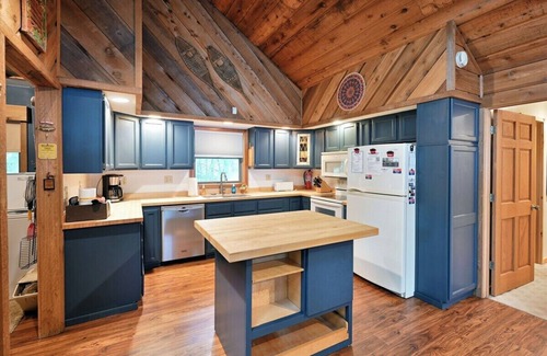 This spacious quality vacation home offers 3 bedrooms and a loft with a futon sofa. There are two full baths including a spacious master suite. The great room with vaulted ceilings has a lakeside sitting area a beautiful wood-burning stone fireplace and a small library/den area. A short flight of stairs leads you to the loft area with a sofa futon and flat-screen TV which makes this a great space to hang out. Down a hallway off the great room are the 3 bedrooms and 2 baths. Which includes the master bedroom suite with a king-size bed and ensuite bath, another bedroom with a king-size bed, and the third bedroom with 2 twin beds. You will have a fully equipped kitchen with a kitchen island.