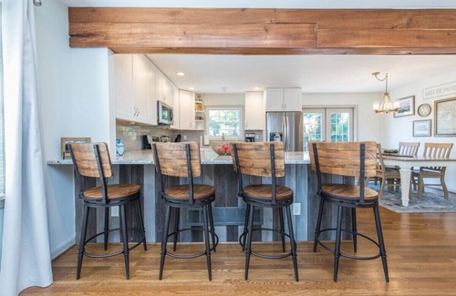 As guests enter through the front door you'll be greeted by an open concept that allows guests to visit and relax. The entry features a cozy living room, dining area, and newly renovated kitchen. Off the kitchen is a large deck with seating for 12. As guests venture down the hall they will find 2 private bedrooms with Queen Size Beds, Full Bathroom in the Hall, and a 1st Floor en-suite featuring a King Size Bed & walk in shower.