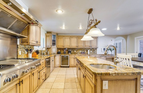 Say 'howdy' to El Paso while staying at this 5-bedroom, 5-bathroom vacation rental. This sprawling house is perfect for a family retreat or extended group getaway. Gather your crew and head downtown to visit the historic museums, or try your luck at Sunland Park Racetrack & Casino! At the end of the day, the pool and spa will be waiting at the house. Then head inside for a billiards tournament!