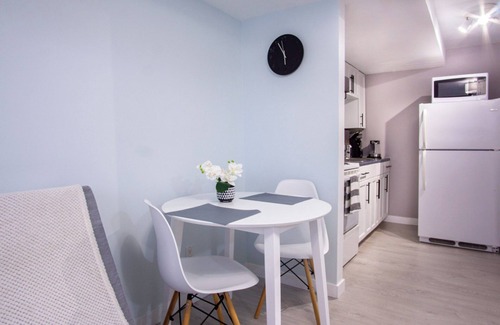 This is a lower separate unit. The apartment features a bedroom with a comfortable queen bed and an en-suite bathroom. There is also a rec room that offers guest privacy, equipped with a sofa bed, a TV with Netflix and Amazon, Wi-Fi, and a kitchen. You will have your own private entrance at the side door, but please note that there is a common hallway that leads to the laundry area where we may occasionally meet.