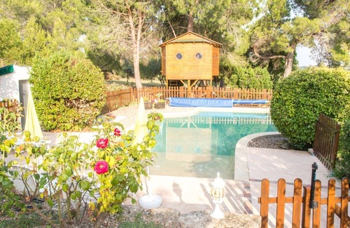 The domain is fenced, it includes a pine forest, a children's playground, a tree house and a 12 x 6 infinity heated heated pool.