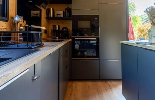 Looking for a getaway between lakes and volcanoes? Settle into this contemporary-style chalet nestled in Chambon-sur-Lac, nestled in lush greenery just a few minutes' walk from the lake. Sophisticated design, a warm atmosphere, and natural materials... This modern haven accommodates up to 7 people with all the comforts to make you feel right at home (only better!). Three bedrooms, a light-filled living room, and a terrace for summer aperitifs or winter hot chocolates: everything has been designed to recharge your batteries, whether with your family or friends. The chalet is part of a small private estate with two other accommodations, ideal for gatherings while maintaining your independence. Hiking, swimming, cycling, skiing... Here, each season offers its own adventures. A place to unwind, breathe, and enjoy the best of the Sancy region in an elegant and authentic setting. The Andesite chalet is composed as follows: On the ground floor: - an open-plan living room/kitchen with a wood-burning stove (wood provided) - a suite with a queen-size bed and a bathroom - a separate toilet On the first floor: - a bedroom with a double bed and a single bed - a bedroom with two single beds Each chalet has a private outdoor space with a terrace, garden, patio furniture, and barbecue. A large terrace shared by all three chalets is also accessible.