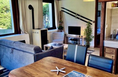 Discover our chalet "La Pagode"! Nestled in a historic setting, this comfortable space offers everything you need for a memorable stay. You'll find two walk-through bedrooms with one double and two single beds, as well as a spacious dressing room and a large closet for organizing your belongings. You'll also enjoy a cozy living room with a fireplace, a fully equipped kitchen for preparing delicious meals, and a bathroom with vintage charm.