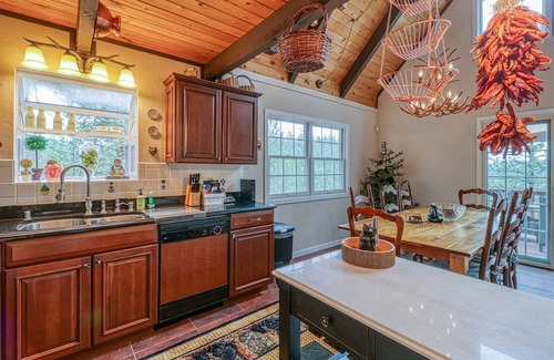 This cozy mountain chalet offers stunning views making for a picturesque retreat in a secluded forest setting. Relax on the deck at sunset, fire up a meal on the grill, and dine at the picnic table. Everyone can nestle by the gas fireplace while playing tunes on the piano in the living room. On the lower living level, you'll find two bedrooms with a queen and double bed. The loft area offers a twin bed with a trundle and a queen.