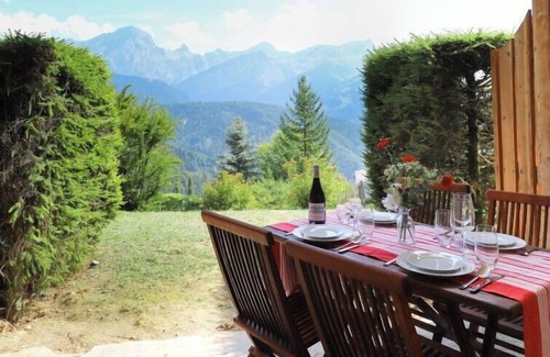 "Chaperon Rouge A3", 2-room apartment 42 m2, on the upper ground floor, south-west facing position. Fully renovated in 2019, comfortable and beautiful furnishings: living/dining room with 1 sofabed (140 cm), TV (flat screen). Exit to the garden. 1 double bedroom with 1 double bed (160 cm, length 200 cm). Open kitchen (oven, dishwasher, 4 ceramic glass hob hotplates, toaster, kettle, microwave, freezer, electric coffee machine, Capsules for coffee machine (Dolce Gusto) extra, raclette grill, fondue Set (cheese)) with bar. Shower/WC. Wooden floors. Small terrace 8 m2. Terrace furniture. Very beautiful panoramic view of the mountains and the valley. Facilities: hair dryer. Internet (WiFi, free). Parking space n A3. Please note: non-smokers only.