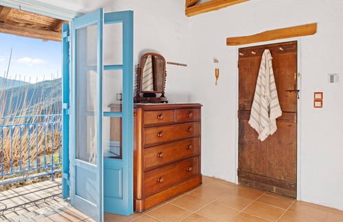 Koutsoufi is very much a retreat, a peaceful house, in which is much more than simply a place to sleep. There are two bedrooms, one master bedroom upstairs with a double bed and en-suite bathroom and one large guest bedroom downstairs with 2 double beds and one singles and an en-suite and private access to the terrace. Alternative sleeping spaces could be set up on one of the couches too but we recommend a maximum of 7 people. Koutsoufi is much more than a place to sleep - there is a grand piano in the living room, a large pool table, a well equipped kitchen and an outside cooking and eating area on the sea-view terrace. There is a wood-fired bread oven on the terrace and plenty of parking space outside the house. The house has central heating for the Winter as well as two fireplaces and underfloor heating and underfloor cooling and air conditioning for the Summer. The house has a breathtaking view over the bay of Tyros and an impressive panorama of the steep mountain behind. Koutsoufi is our special place where we hope you will feel at home as well as on holiday.